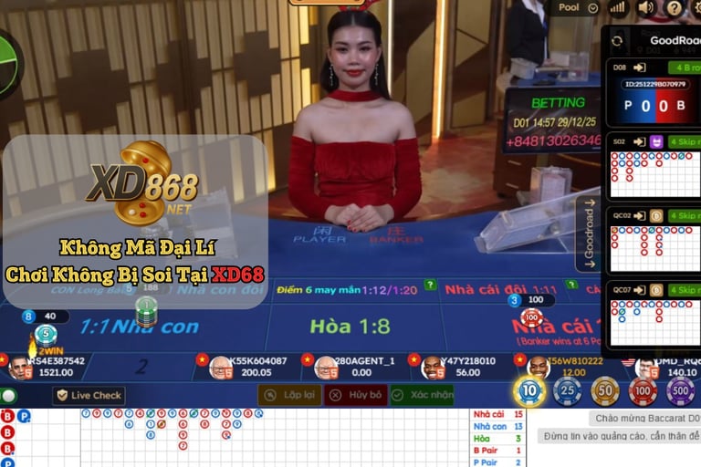 Tại XD68, Baccarat trực tuyến phát triển mạnh nhờ sự minh bạch, chia bài livestream trực tiếp, đảm bảo công bằng tuyệt đối.